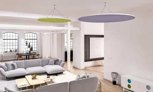 Die Schallabsorber lassen sich ideal mit weiteren Absorbern und Deckensegeln der selben Formatreihe kombinieren um die akustische Wirkung zu vervielfachen.