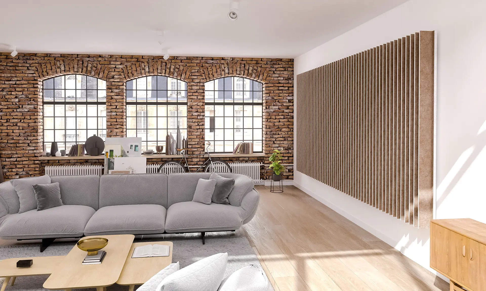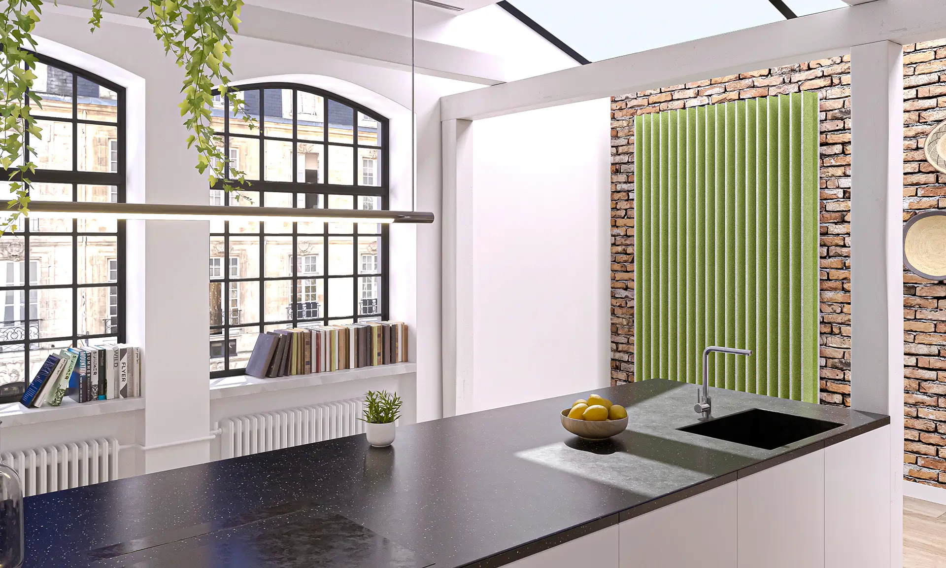 3D Wandabsorber Straight Pure-RAW™ im parametrischen Design vereint puristisches Design mit höchster Effizienz und Nachhaltigkeit.