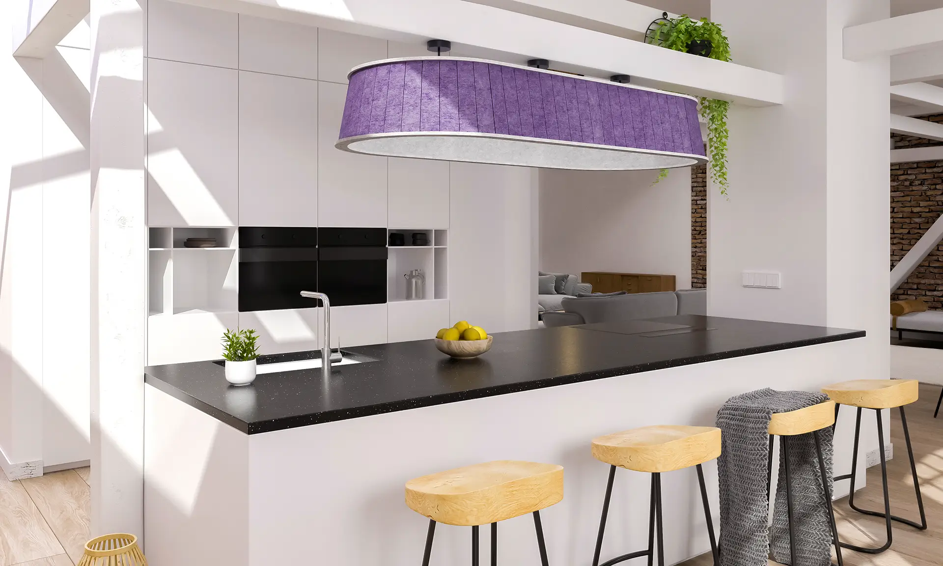 Akustik Deckenleuchte Pure-RAW™ Capsule lässt sich bei Bedarf mehrer Akustik Leuchten ideal mit unserer runden Akustikleuchte Circularity kombinieren. Sieht stimmig aus, und schluckt den Schall üppig.