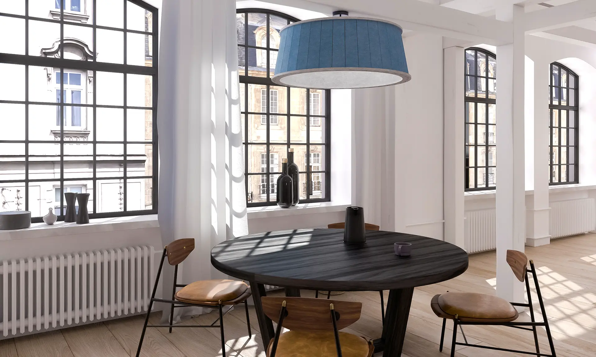 Die Akustik Deckenleuchte Circularity Pure-RAW™ bringt Dir nebst der maximal möglichen Helligkeit von 2450 Lumen viel Ruhe und gediegene Atmosphäre mit farbig per App steuer- und dimmbaren Licht in Dein Büro oder Zuhause.